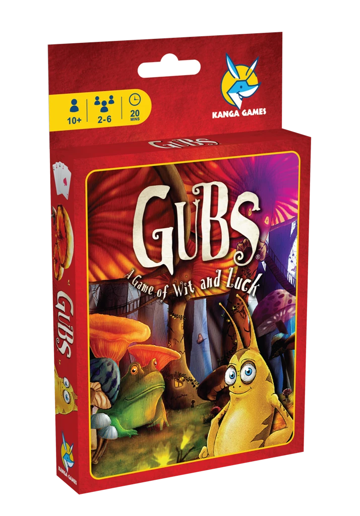 GUBS: A Game of Wit and Luck invites you to partake in the secret struggle of the Gubs. Each player competes to build the largest, strongest colony by the time the three dreaded Letter Cards emerge from the deck and end the game. Their world is a place filled with danger; from giant Omen Beetles who consume the delicate Gub Cities to Flash Floods to deadly Wasps, your gubs hardly stand a chance on their own… but arm them with Spears, let ride the valiant Toad Riders, build Mushroom Barricades and lead your colony through the forest underbrush and to victory.